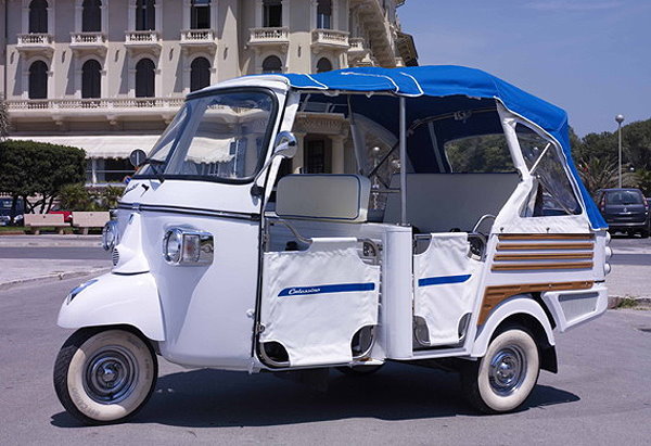 PIAGGIO準備量產全電動輕型載具Bee Calessino Electric Lithium! CVNews 商業車誌: 盧佛青|08/10/2009 相信去過泰國遊玩的網友,一定對於價格便宜而且相當便利的Tuk-Tuk印象深刻,而當然為了更符合環保節能需求,新世代的Tuk-Tuk也有不少準備以導入替代能源動力的計畫與方案,但根據最新外電消息指出,遠在歐洲的義大利PIAGGIO集團,日前正式宣佈他們將率先於歐洲市場發售一款搭載全電動能源的輕型載具,或可被視為是另類版的進化環保Tuk-Tuk! 這款稱為Bee Calessino Electric Lithium的全電動載具,跟大家在曼谷街頭見到的Tuk-Tuk同樣是採用開放式的四人座配置,而且同樣維持Tuk-Tuk傳統的三輪配置,動力系統來自於一具高效能的鋰電池,總功率輸出為18Kw,空車總重為520kg左右,安全極速可達50km/h,充分滿足一般擁擠都會區的型車需求。 這款電動三輪車天氣好的時候還可以開篷享受風光! 此外,原廠義大利PIAGGIO原廠表示這具電池充滿電力後,續航力約可達75km的距離,而且利用家用220V伏特的電源充電,約3-4小時就可以達到滿電狀況,預計電池至少可充電超過1200次以上,一具標準鋰電池約擁有90000km的壽命。 義大利PIAGGIO集團表示這款新車初期將量產約一百輛,而且也將在歐洲與泰國發售,預計歐規版本建議售價約20880歐元,約合新台幣98.3萬元,約與一輛2009年式第三代歐規TOYOTA Prius在當地的售價相當。