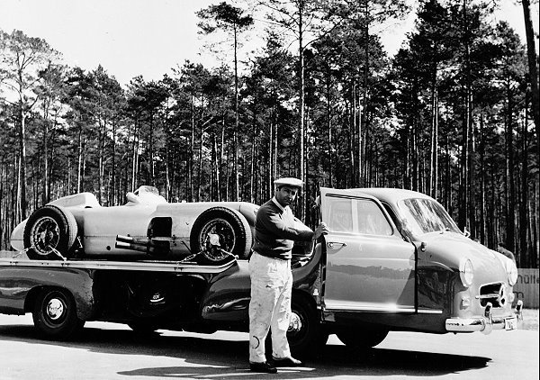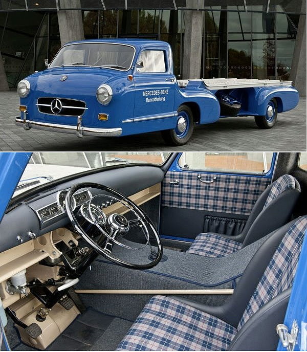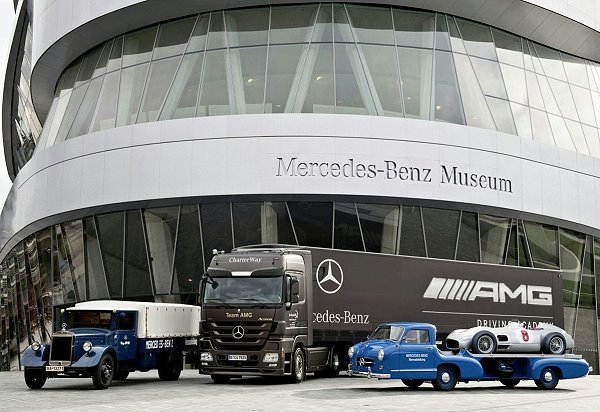 M-BENZ賽車靈魂的背後推手,M-BENZ Actros戴前輩光彩效力MERCEDES GP車隊! CVNews 商業車誌: 蔡志宇|11/25/2009 老中青三代在M-BENZ賽車歷史中扮演相當重要的角色。 M-BENZ先前以75.1%的持股買下剛獲得F1冠軍的BrawnGP車隊,將在2010年以MERCEDES GP車隊重返F1賽季;而M-BENZ豐富的75年賽車資歷在明年將開啟新的章節,M-BENZ除了積極為明年賽季鋪路之外,在後勤部分負責運送賽車的拖車也確定將由Actross負起重責,然而日前M-BENZ也藉此機會將品牌75年以來老中青三代負責賽車運輸的車款一同展示,傳承意味不言而喻。 Lo 2750 最早是1930年代負責運輸當時首度拿下冠軍的Silver Arrow賽車,以閃亮的鍍鉻水箱罩圍標誌的〝Lo 2750〞(以其2.75噸後斗承載重量得名),接著是在1955年的The Blue Wonder,以及接下來延用至今的16m長的Actross拖板車; 其中Lo 2750的設計取源自M-BENZ在1920年代相當主流的低平台車款,也就是能夠方便乘客上下車與乘載貨物的車款;因此自1934年起便開始使用這類型的卡車來負責運載賽車,也就是Silver Arrow賽車。 而Lo 2750為了擔起這項不簡單的運輸任務,M-BENZ也將其增加許多一般運輸車不會有的配備,包含在中控台面板上加裝頭燈開關、電子轉向信號燈、時速與轉速錶、油量顯示、引擎啟動鈕與手持燈器差座;而車頭水箱罩上大而閃亮的三芒星標誌在1930年代與當時稱霸紐柏霖賽道的W 25 Silver Arrow賽車一同出現在賽場周圍時,也讓這輛Lo 2750成為當時最火紅的運輸卡車。 1955年的The Blue Wonder則是應當年M-BENZ著名的賽車經理人Alfred Neubauer要求,由原廠原車型部門特別打造出這輛歷史上最快的運輸卡車;The Blue Wonder是以M-BENZ 300 S豪華coupe的鋼管結構為基礎,搭配上M-BENZ 180房車的車室內裝與車門等料件打造而成;至於動力部分,則是300SL跑車的3.0L直六引擎,在燃油直噴技術的加持下在當時就具備240hp的最大馬力輸出,讓這輛車長達6750mm的運輸卡車能夠以性能在M-BENZ歷史中留名,當然僅打造一輛的特殊性更是主因。 最後承襲先前兩輛前輩的,就是M-BENZ Actros;除了已經確定為MERCEDES GP車隊的指定運輸車外,事實上Actros再先前也是2008年F1世界冠軍Lewis Hamilton所屬McLAREN車隊的運輸卡車,已經擁有相當豐富的F1賽場經歷,此外M-BENZ Actros也是在德國DTM旅行車大賽中,作為AMG車隊用來接駁C-Class賽車至歐洲各地的車款。 M-BENZ Actros除了搭載當今商用車最頂尖的電子配備之外,動力系統16.5L V8柴油渦輪引擎所能夠提供的最大馬力介於510-598hp之間,再加上PowerShift 2自排變速系統為車輛提供更為節能的動力輸出,讓第三代的Actros在去年的漢諾威商用車中也獲得21個國家的專業評審評選為〝Truck of the Year 2009〞。 The Blue Wonder 300SL的直六動力 M-BENZ Actros