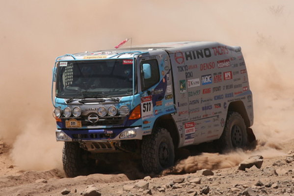 19次完賽也是一種榮耀,HINO成功拿下2010達卡賽事市售車第一名 CVNews 商業車誌: 蔡致堅|01/26/2010 從1991年參加巴黎-達卡賽事以來,日本HINO總是以市售車身分參加10噸級距賽事,雖然2009年移師南美安地斯山,但HINO依然沒有在賽事缺席,甚至在2010年由「Hino Team Sugawara」拿下卡車市售級距與同級距排氣量不滿10L的冠軍,這也是HINO第19次完成賽事。 由阿根廷到智利的達卡賽事,比起過去巴黎-達卡更來得嚴苛,主要是途中必須和高山峻嶺、酷熱沙漠等險惡大自然環境搏鬥,除了車輛性能、維修後勤團隊外,駕駛人的耐力和體力可是相當重要,由於要翻越落差4000m的安地斯山,2010年賽事中完賽率只有52﹪,宣布退賽者將近一半,不過HINO卻靠著經驗豐富的選手拿下級距冠軍,對於HINO而言在賽車歷史上再添一筆。 這次代表HINO參賽,為達卡賽事中參賽最多(27次)的菅原義正與兒子菅原照仁父子檔所組成的「Hino Team Sugawara」,並以兩輛HINO Ranger當作賽車,結果在卡車部門中以第一和第二完成比賽,也讓僅拿到第七的HINO沾光不少。