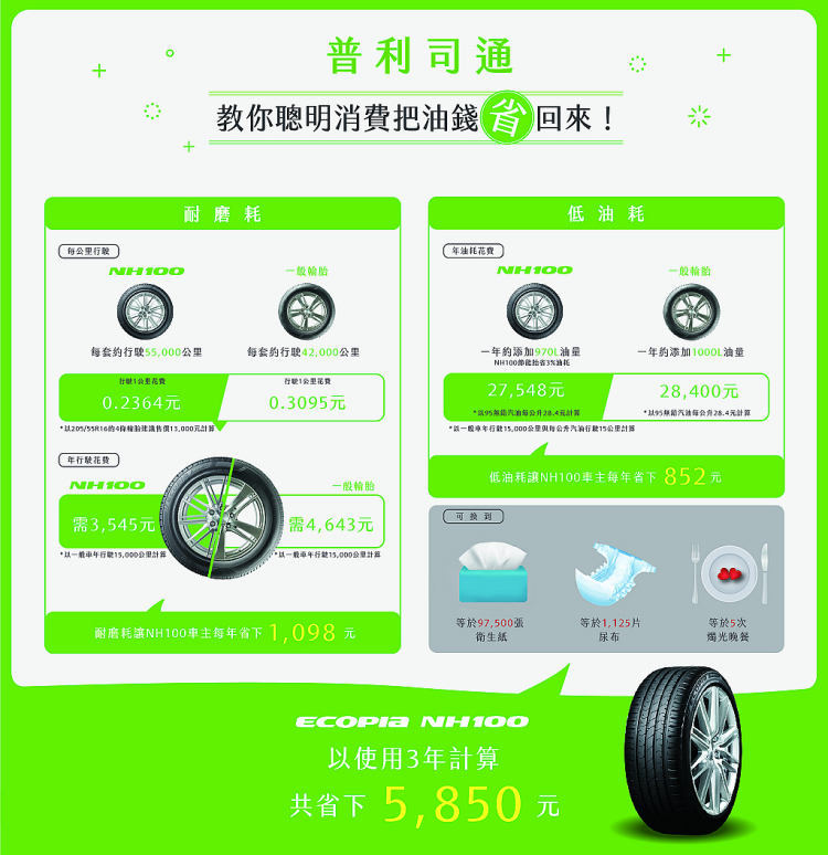油價連四漲?開車族快「揩油」!選對輪胎、破除網路迷思,聰明消費把油錢省回來 CVNews 商業車誌: 編輯組|01/08/2018 95無鉛汽油已從2016年每公升21.4元飆升到28.4元【,油價連四漲,已是37個月以來的最高點,而受到伊朗政治動盪及美國原油庫存下降等因素影響,中油更預估國際原油價格可能會比現在高3成。面對吃不消的油價上漲惡夢,民眾荷包只有越來越緊。邁入2018年,在萬般皆漲,唯有薪資不漲的時代,一切都要精打細算。 對「有車階級」而言,除養車的費用外,與荷包最息息相關的,就是車輛的油耗表現。如何節能省油,是所有開車族都在乎的重要課題。為了省油,許多駕駛會使出千奇百怪的絕招,絞盡腦汁痛苦的想出各種省油方法,這時,倒不如改變思考方向,破除舊有迷思,讓你的荷包少失血、車子也跑更遠! 拒當油耗冤大頭,汽車省油雙管齊下 選對輪胎,幫你省下千片尿布 對小資族而言,生活中各面向精省,可是日後能享受大餐、出國旅遊這類大幸福的關鍵;根據調查,台灣民眾在交通開支佔生活的12.65%,對開車通勤族群來說,買車時就大致底定油耗的多寡,因此接下來當然希望車輛耗材能有更好的省錢效能,讓辛苦掙來的每一分錢都能久待戶頭。 為了省油錢,網路流傳許多作法,有人更以不正確的輪胎使用方式省油,像是將輪胎磨到幾乎沒胎紋,藉以減低阻力與油耗,或是讓胎壓充氣數值超過原廠規範,希望可以降低阻力,節省油耗。然而這些做法不僅不省油,還可能傷車子或違反法規,甚至有安全疑慮。如今市面上已有省油又能提高磨耗壽命的輪胎新選擇,雙管齊下可以讓開車族在交通開支上更能對症下藥。 專家教你破解NG省油行為 讓你省還要再更精省 如何節能省油,是所有開車族都在乎的重要課題,除了可以透過使用經濟效能高的輪胎節省油錢外,網路上還流傳許多如何加油最省的方法,普利司通破解網路3種常見迷思,提供省油省錢妙招,與其絞盡腦汁的痛苦省油,倒不如改變舊想法錯知識,從根本處節省油費更為實際。 3大常見NG省油行為 NG 1、根據調查,有30%的駕駛認為用力踩煞車到底較不耗油 → 重踩煞車其實比分段式踩剎車會更耗油。 NG 2、覺得熄火前空催油門,隔天車子比較好開 → 空催油門反而更耗油。 NG 3、從熱脹冷縮的原理來看,晚上或清晨加油比較划算 → 加油站汽油存放地下儲油槽,溫度穩定。因此無論何時加油,因地面氣溫起伏而影響的油量微乎其微。