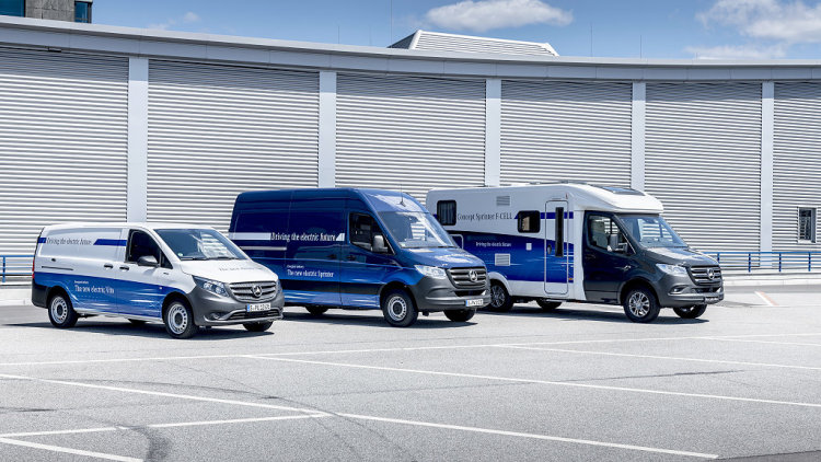 M-BENZ宣布純電與燃料電池商業車戰略計畫! CVNews 商業車誌: 盧佛青|07/09/2018 日前,我們曾經報導過,M-BENZ發表全新的概念旅行房車Conccept eSprinter F-Cell,而日前也同步公開其商商業車電氣化戰略與相關車型等細節,其中包括純電商業車eVito與燃料電池混合動力商業車eSprinter等,至於日前發表的Conccept eSprinter F-Cell預計於明年正式量產,而且訴求達500km的最大續航距離。 與此同時發表的M-BENZ eVito純電商業車,將提供標準與長軸版本,車身長度分別為5130mm與5359mm,車輛最大乘載重量可達1070kg,最大可容許乘載物品體積相當於614L,另外也將提供41kWh與55kWh等二種容積的電池模組,最大續航力分別達到115km與150km,最高車速均可達120km/h。 另外,除日前發表的概念旅行房車Conccept eSprinter F-Cell之外,也將量產一款具備同樣動力技術的eSprinter F-Cell商業車,車身將採用Panel Van盲窗車形式,車上共提供三具氫燃料儲存桶,另外也可增加第四具裝置讓最大續航距離提升至530km。 M-BENZ表示將比照現行Sprinter車系,提供搭載這項燃料電池混合動力技術之中型客車或物流等各式特種車款,另外也將擴大這項稱為eDrive VANs的戰略合作範圍,與包括Amazon物流車隊等進行實地營運合作,初期將率先於德國境內部分城市或地區營運,而M-BENZ亦將與當地政府合作建置充電站、充電樁設施等。