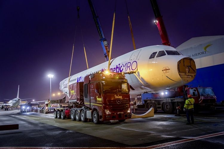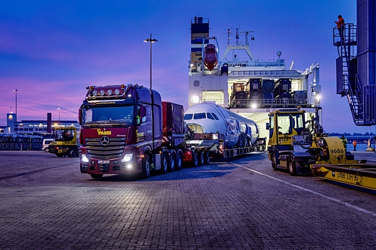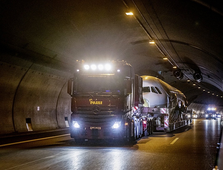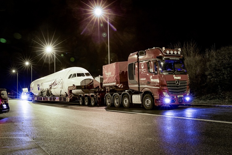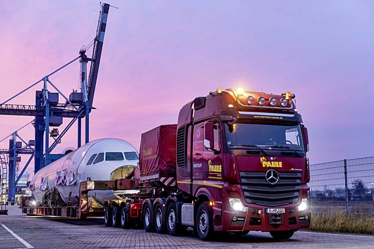 賓士重車曳引車Actros SLT長途運送90噸重Airbus 320客機展現強大戰力 CVNews 商業車誌: 趙惠群|01/16/2019 賓士(MERCEDES BENZ)旗下的商用重車Actros,最近在德國公開展現了它的強大作業與拖曳能力,它在公共道路上拖拉一台90噸重的空中巴士客機Airbus 320,因而吸引大批的路人圍觀。 這項拖曳任務長達11天,是由賓士的重型曳引車Actros SLT執行Airbus 320運送任務,這架客機長60米、寬5米,重達90噸,如此龐然巨物拖上道路,所到之處,自然會成為路人目光焦點,而這架客機日前在愛沙尼亞因為重著陸而受損,由總部位於斯圖加特的重型運輸公司PAULE,派出他們最大馬力630匹的賓士Actros SLT負責運送,將把客機運到德國南部。 一艘卡車渡船載運這架客機,橫渡波羅運往德國北方的盧貝克碼頭(Lübeck),接著從那裡,由Actros SLT的重型運輸車隊,利用三個夜晚上,橫跨漢堡、馬格德堡、紐倫堡和斯圖加特等四個城市,運往德國南部的黑森林北部。在這條運輸路線上,載運Airbus 320的車隊被迫兩度駛離高速公路,為避開低矮的陸橋。另外, 在Actros SLT離開高速公路,得沿著高速公路行駛,到下個交流道再透過繁鎖的前進後退,才能讓車子重新回到高速公路上。 最後這架空中巴士客機最後被運到黑森林的克洛(Calw)一處KSK特種部隊的訓練基地,未來它將置在那裡,做為部隊訓練的教材,讓特種部隊的學員利用客機來模擬和訓練反恐、反劫機等訓練任務的戰技,而這樣一件極致艱難的運送任務,也凸顯了Actros SLT的可信度和拖掛作業實力。Actros SLT配備的動力擁有最大馬力630hp,最大扭力3000 Nm/1100 rpm。
