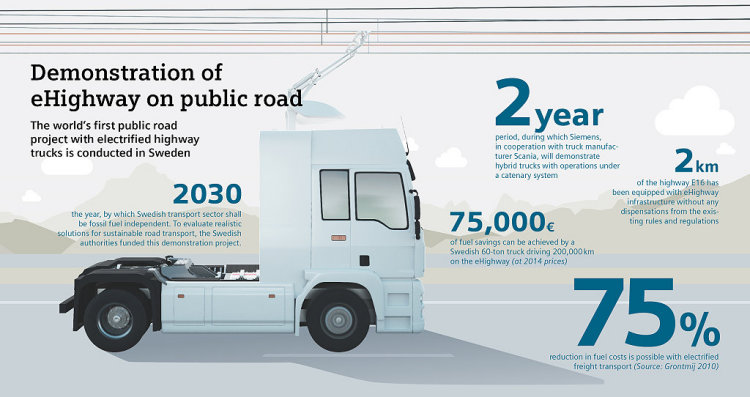 電車線+重卡=eHighway?SIEMENS實驗讓重卡經營成本降低85%! CVNews 商業車誌: 盧佛青|01/29/2019 在2010年開始,SIEMENS為了積極研擬各種新能源技術,希望可以提供更多商業車電氣化的選擇與方案,其中最受到注目就是在瑞典、美國與德國境內進行的eHighway電氣化高速公路,而近年來也已經累積相當驚人的統計數據,也將為該系統的商業化做出更多貢獻。 這項由SIEMENS與多家重卡品牌合作打造的eHighway(電氣化高速公路),根據統計比起傳統柴油重卡可降低達85%的營運成本,SIEMENS表示若與40噸總重的商業車每年行駛102萬公里距離為例,eHighway約可省下達到2萬歐元(約合台幣70.28萬元)的經營成本,或全路況其中有30%比例採用eHighway,一年下來可減少達600萬噸的碳排放。 目前這樣試驗在包括瑞典E16高速公路、美國洛杉磯港、德國A5高速公路之間進行,而其中則針對50km距離以內的中短途運輸為主,尤其在礦區連結物流中心或港口之間的效益更加明顯。 此外,SIEMENS表示類似輕軌電車或路面電車的架空電車線,可從變電站直接傳遞電能至車輛,可提供80-85%的能源效率,車上更具備動能回收系統,電車線可以將煞車時產生的電能回送給其他車輛或電網,而且更無須向其他公共建設還需費時進行土建,僅需結合現有的基礎設施安裝電車線所需的支架即可完成,而且在0-901km/h均可進行駕駛艙上方的集電弓與線路自動對接或分離,也大幅提升車輛應對各種交通狀況,成完全無頓挫的手動或自動連結或分離,車輛也可因應不同模式採用不同的混合動力配置方式,包括柴油引擎、天然氣引擎、鋰電池或燃料電池等等,同時也結合了軌道交通與道路運輸之間的靈活性。 到底是電車還是重卡,eHighway可能為今後的新能源技術提供多一種方案,我們也將持續追蹤有關於eHighway的後續發展。