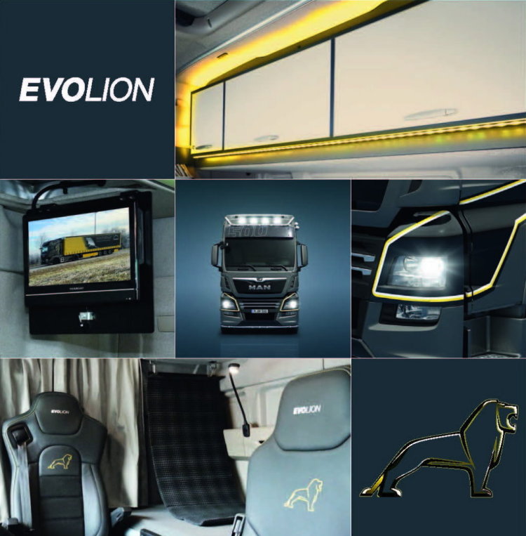 繼Performance line之後,MAN TGX Evolion限量版在歐預售! CVNews 商業車誌: 盧佛青|04/11/2019 在去年2018 IAA漢諾威商業車展,當時首發的Performance line藍色限量版在上個月領先於歐洲發售之後,緊接著旗艦限量版本的MAN TGX Evolion也宣布在歐洲市場開放預購。 以進化為名的MAN TGX Evolion,外觀具備專屬的車頂不�鋼管狀支架,而且更標配四具鹵素投射燈,而且前遮陽罩更有專屬的500字樣,顯示其所搭載的D38共軌柴油引擎,可輸出最大馬力達500hp,包括車外後視鏡更標配電動調整與加熱除霧功能。 另外,MAN TGX Evolion更標配HID氣體頭燈與LED日行燈組,且標配位於駕駛艙的不�鋼護桿,原廠則提供安全型與舒適型套裝。 限量版的MAN TGX Evolion全面搭載15.2L共軌柴油引擎,可輸出最大馬力500hp與峰值扭力254.92kgm,標配MAN MipMatic手自排變速系統(前進12檔位),油箱總容量為860L(尿素容量80L),且標配包括ABS、動態穩定控制系統、MAN BrakeMatic自動煞車系統、ACC主動車距控制定速巡航、EBA2緊急煞車輔助系統、ESS緊急煞車警示等。 另外舒適型套裝更專屬標配真皮座椅,駕駛座椅標配氣囊升降、電動腰靠調整、座椅通風/加熱功能,且標配7吋觸控車載平台與多功能方向盤。