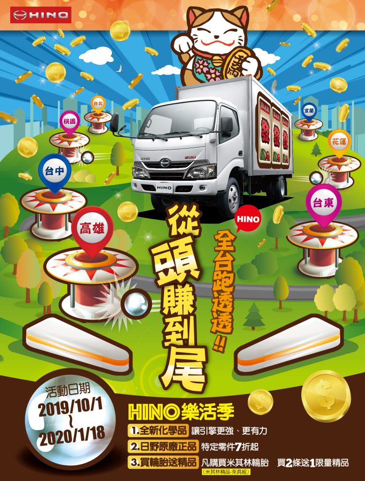 HINO樂活季活動,邀HINO商用車、TOYOTA Coaster中巴車主回廠實施安全檢查 CVNews 商業車誌: 編輯組|10/02/2019 HINO商用車台灣總代理和泰汽車自2019年10月1日起至2020年1月18日止,舉辦「HINO樂活季活動」,邀請HINO商用車、TOYOTA Coaster中巴車主回廠為愛車實施安全檢查,讓車主能在秋冬節氣轉換來臨前,行車更加穩當,確保車輛最佳行駛狀態,安心打拼事業。 本次活動有三大特點,首先是全新化學品推出,其次為日野原廠特定零件七折起,最後是購買米其林商用車輪胎買2條送1組精品(限量茶具組一套)等;敬邀所有車主入廠保修購買! 為節省車主寶貴時間,建議入廠前先於HINO LINE@或來電預約可保養時段,準時入廠即可優先派工,讓您的時間能更靈活運用。相關活動訊息及服務據點電話、地址、服務時段,請至HINO網站www.hino.com.tw或電洽0800-522-567查詢。