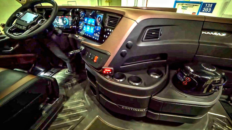 用了Actros駕駛艙之後,KAMAZ K5新世代旗艦重卡即將發表! CVNews 商業車誌: 盧佛青|01/07/2020 KAMAZ K5 2018年起,DAIMLER投資的俄羅斯商業車品牌KAMAZ,除開始投產與新款Actros同等技術的全新K5旗艦重卡,而且今年也準備要發表真正最高大上的旗艦版本。 目前已經在產的K5車系,最頂級版本則為2019年式的5490系列,但顯然真正重裝版本還沒出現,為了擴大產品陣容,不久之後即將發表的K5旗艦版本,同樣將由位於俄羅斯Naberezhnye Chelny負責生產,而且最近曝光的旗艦版本顯然更高檔。 這款KAMAZ K5旗艦版本,確定將以2020年式身份發表,與現售的K5-54901車型相比,已經換上與歐規全新改款M-BENZ Actros同步的ADAS駕駛輔助科技,外觀上除了提供質感更優異的飾板之外,最明顯的就是車外後視鏡不見了,取而代之的當然就是DAIMLER開始力推的攝影鏡頭。 另外,儀表則沒有比照Actros的巨幅變動,而是沿用原有K5車系的基礎進行升級,駕駛儀表換上了12吋的數位配置,且頂級版也增配大面積的觸控車載平台,但最驚人的則是在多功能方向盤上也配置了觸控螢幕,這一點就反而幹掉了New Actros 動力系統方面,新款旗艦K5系列,還將增加一具LIEBHERR生產的12L柴油直六引擎,而且還導入了混合動力技術,原廠代號為D946的版本,可輸出馬力544ps與扭力265.2kgm,而且還具備短距離純電行駛的能力,不過詳是資料要等KAMAZ正式發表才能確定。 KAMAZ K5 KAMAZ K5 KAMAZ K5 KAMAZ K5 New Actros New Actros and New Axor