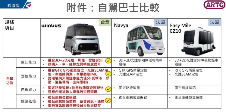 WinBus國人自製自駕小巴為期一年之鹿港彰濱智慧觀光接駁計畫正式上路! CVNews 商業車誌: 盧佛青|04/08/2020 WinBus期待與您相遇在鹿港。 去年8月26日首度於經濟部全球首演的MIT國人自製自駕小巴WinBus,由ARTC(財團法人車輛研究測試中心-簡稱「車輛中心」)攜手與國內車輛上下游關鍵零組件與系統等20家以上廠商群策群力打造,更達到美國汽車工程師協會(SAE)對自駕車定義的Level 4等級,ARTC更攜手勤崴國際率先通過經濟部「無人載具科技創新實驗計畫」申請,請領到自駕沙盒運行條例首張試車牌,且於3月20日起首航,啟動為期一年之「鹿港彰濱智慧觀光接駁」營運實驗計畫。 2020年WinBus新階段的任務,則由ARTC、勤崴國際、中華電信、宏�智通等本土自駕產業聯手,率先通過自駕沙盒 運行審查,開始為期一年於鹿港與彰濱工業區進行自駕車接駁道路實驗測試,接駁路線總長度為12.3公里,且規劃達12種測試情境,WinBus將透過車端自駕系統、智慧道路設施以及後端運行管理平台,驗證自駕巴士於鹿港觀光景點接駁服務能力。 ARTC車輛中心總經理王正健表示,自動駕駛車輛從技術研發至實現產業化的過程,實際道路驗證將成為最重要的一環,在經濟部技術處科技專案支持,ARTC車輛中心不僅完成車輛的設計打造,且與勤崴國際等廠商共同完成政府推動上路「無人載具科技創新實驗條例」之第一案,後續配額政策推動「自駕車實證運行計畫」,以上路運行為目標,服務驗證及商業驗證為主軸,結合地方政府需求,由業者領軍、法人為輔,發展創新運行服務模式,期能加速推動自駕車產業發展,協助業者建立自駕車服務解決方案,甚至拓展至海外市場,目標希望可以打造真正具備實際商業化、產業化能力的國家隊。 根據勤崴國際總經理黃晟中表示,2019年公佈實施且於10月25日開始受理申請之「無人載具科技創新實驗條例」,不僅成為第一家送件申請廠商,且於2020年3月3日正式通過審議,拿下國內首張上路營運自駕車是車牌,WimBus更於3月20日正式首航上路。 勤崴國際指出,在這項為期一年的「鹿港彰濱智慧觀光接駁」營運實驗計畫中,第一階段為期二個月採用不載客運行,路線則行經彰濱工業區間之四大觀光工廠,第二階段則將開放民眾搭乘體驗,第三階段則將擴大接駁範圍,從彰濱工業區擴大至鹿港天后宮停車場,運行路線總長度為12.3公里,成為目前國內自駕巴士接駁最長的道路實驗路線,以驗證全區接駁服務能力,首年預期目標達成行駛1000公里與接駁人數1500人次,第二年將達三倍以上成長量,期能達成每年千萬人次之旅客服務範圍。 達到美國汽車工程師協會(SAE)對自駕車定義的Level 4等級的MIT國人自製自駕小巴WinBus,由ARTC車輛中心完全自行設計,更串連國內產業鏈打造完成,其中包括線控化底盤(轉向、煞車、電動動力)、車身造型與結構、自駕系統匹配(感知、定位、決策),WinBus車內無方向盤、煞車及加速踏板,具雙軸轉向及雙軸驅動力功能,適合偏鄉山區路窄及短距低運量之公共運輸自駕運行。並擁有高精度定位系統、AI感知融合辨識系統及智慧化決策控制系統,透過32 layer光達(Lidar)、77GHz雷達與360 度全方位無死角辨識系統,收集車輛行駛環境資訊,兼具白天及夜晚辨識行人、車輛之能力,為未來台灣智慧接駁發展樹立新的里程碑。WinBus不僅展現了車輛中心自駕中心的科研實力,也搭載了國內首屈一指ADAS系統廠商模組,以及環保零排放的電動化系統,更具備以下特色功能: 1.智慧化全自駕模式:透過各式感測器,包括攝影機、2D與3D光達(Lidar)和雷達,感知收集不同的車輛環境資訊,並即時快速的作出複雜決策,進一步串聯車上各套系統,以控制車輛的行徑,如轉向、煞車及加速等等;具白天及夜晚辨識行人、車輛之能力,並具備定速巡航、車道跟隨自動駕駛系統、自動緊急煞車系統、自動靠站接駁、3D光達障礙物偵測、夜間燈光指引等多項智慧駕駛技術,可達SAE Level4自駕等級。 2.前後雙向行駛:車內無方向盤、煞車及油門踏板,雙軸轉向及雙軸動力系統,無須轉向掉頭即可啟動行駛,符合偏鄉山區路窄之需求前後雙軸皆可轉向與驅動。 3.貼心安全設計:符合交通部安審基準550-動態翻覆之法規要求、ECE R100電氣安全、智慧頭燈夜間投影、車門防夾安全機制、人性化人機介面、多屏行車資訊及語音提醒、緊急停車按鈕、緊急通報、智慧站牌聯網、遠端協控、隊列行駛等功能。 4.創新服務新里程:Winbus以車廠研發的思維模式開發,依各地方政府需求提出交通服務解決方案,包括都會離峰、偏鄉、觀光景點、捷運或輕軌之接駁,訴求高彈性低運量的規劃設計,充分展現客製化的運輸功能,將改變臺灣交通運輸模式並催生更細緻、便民的交通網絡。 WinBus將串聯鹿港特色的觀光工廠的智慧交通接駁,開啟公共運輸新里程。