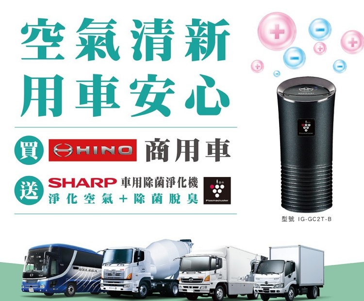 買HINO商用車,送SHARP車用除菌淨化機 CVNews 商業車誌: Ginny|07/06/2020 為回饋消費者的支持與殷切期盼,HINO台灣總代理和泰汽車,推出商用車全車系購車贈禮之好康活動。活動即日起至2020年7月31日止,購買HINO與TOYOTA全商用車型,且完成發票開立等販賣程序者,即符合【空氣清新 用車安心】購車贈禮專案之活動資格,可獲得SHARP車用除菌淨化機乙台(市價新台幣3,490元),與12-24V雙USB車用型充電器乙台(市價新台幣499元)。消費者可至經銷商(長源汽車、蘭揚汽車、東部汽車)之營業據點賞車,或至HINO官方網站(www.hino.com.tw)查詢相關優惠資訊。