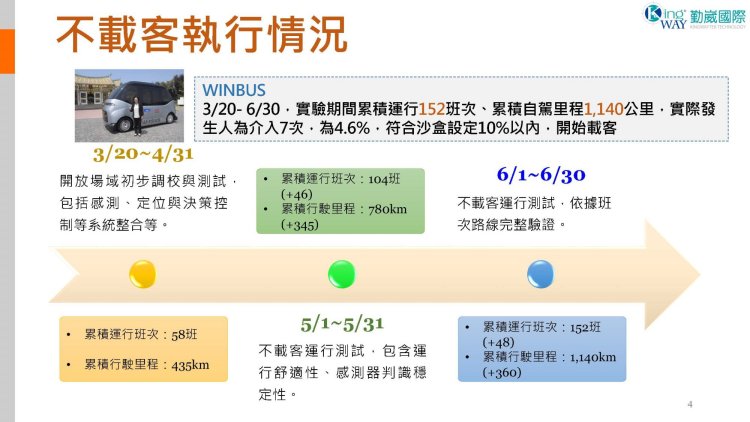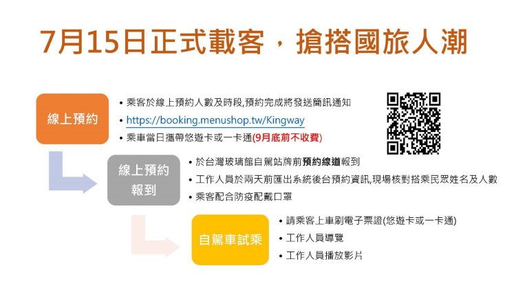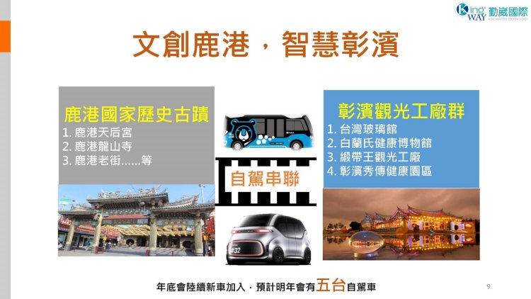 陪你過暑假!WinBus自駕小巴正式載客運行,鏈結彰濱鹿港觀光景點 CVNews 商業車誌: 盧佛青|07/16/2020 全國首發自駕觀光小巴WinBus在經濟部次長林全能(左三)與彰化縣縣長王惠美(左四) 共同視察後,將正式鏈結彰濱鹿港觀光景點(緞帶王、白蘭氏、台灣玻璃館、秀傳與鹿港天后宮等) ,為遊客提供自駕接駁服務 經濟部推動「無人載具創新實驗計畫」已陸續在各場域試運行,勤崴國際自今年2月拿下「全台第一張可營運自駕車上路牌照」後,即與車輛中心合作於彰濱觀光工廠進行3個月的不載客運行。7月14日通過第一階段安全測試無虞,由彰化縣長王惠美偕同經濟部次長林全能共同視察勤崴與觀光工廠相關準備後,於暑假第一天正式宣布載客運行,為遊客提供自駕接駁服務。 勤崴國際與車輛中心等廠商推出的WinBus自駕小巴觀光運行計畫,在經濟部次長林全能與彰化縣縣長王惠美(左四與五)見證下,正式宣布載客上路,陪您Fun暑假 挑戰世界最長自駕巴士接駁路線總長度達12.6公里 本計畫運行路線總長度12.6公里,為目前全世界最長的自駕巴士接駁路線,第一階段營運將由彰濱工業區的台灣玻璃館發車,途經彰濱秀傳健康園區、白蘭氏健康博物館、緞帶王觀光工廠等,環狀路線全長7.5公里,繞行一圈車程約1小時。第二階段陸續加入勤崴國際自駕車、車輛中心WinBus及勤崴與創奕能源共同打造的自駕小巴等多車後,將增加班次與載客數,由鹿港天后宮發車,透過自駕車創新科技鏈結彰濱鹿港觀光文創。讓遊客不僅能探索傳統鹿港小鎮,還能體驗自動駕駛小巴參觀彰濱知名的觀光工廠,搶搭疫後國旅商機! 全台首次結合旅行社與觀光工廠業者的自駕接駁計畫 勤崴國際偕同中華電信、中華資安、宏�智通、創奕能源科技、時代動力等公司完成全台首件經濟部無人載具科技實證運行補助計畫審查,也是全台首次結合旅行社與觀光工廠業者的自駕接駁計畫,透過勤崴國際自駕技術與營運規劃及與車輛中心WinBus技術合作,補足原有交通不便的缺點。而自駕車所需的路側通訊則由5G龍頭中華電信主責,並透過中華資安來把關全場域的資通訊安全驗證,確保無駭客入侵妨害運行安全。 自駕觀光小巴多元支付及電子觀光套票搶搭振興國旅潮 此外自駕觀光小巴透過宏�智通與四大觀光工廠業者的合作提供多元支付及電子觀光套票等優惠方案,增加民眾體驗的便利性。未來預計擴大優惠參與店家到彰濱鹿港兩地,希望帶動鹿港彰濱地區的觀光人潮收益,結合國內旅行社推廣特色國旅一日遊,搶搭振興國旅潮。暑假第一天正式載客運行,民眾可透過線上預約優先體驗搭乘,九月底前不收取任何費用,記得攜帶電子票證(悠遊卡或一卡通)上下車刷卡,以便實驗計畫記錄乘車人次,官方預約網站詳情請至FB臉書粉絲專頁「逐鹿彰濱自駕暢遊-彰濱自駕觀光小巴」。載客期間,隨車安排車輛中心技術人員以確保運行安全,因應突發狀況,請預約搭乘體驗之民眾配合隨車人員安全指示,並請行經自駕觀光小巴路線之用路人遵守交通規則及行車禮儀,以確保行車安全。