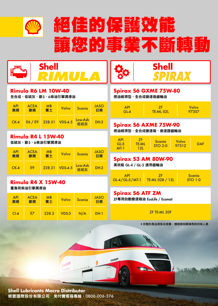 2021商業車博覽會搶先報:大眾最可信賴的殼牌潤滑油--蜆豐國際股份有限公司 CVNews 商業車誌: 編輯組|03/26/2021 「蜆豐國際股份有限公司」將參展於4月15至4月18日,在台中國際展覽館舉行之「2021商業車博覽會」(台中市烏日區中山路三段1號)! 更多參展資訊請見: 2021商業車博覽會官網 而且,現在正在全台連鎖書店上架販售的「商業車誌27期」內,也附贈了三張「買一送一優惠券,只要憑券到大會現場,就能以優惠價購票入場! 【公司簡介】 大豐貿易由創辦人 張文弼董事長成立於1956年,初期即以代理殼牌潤滑油為主要生意項目,自此大豐貿易與殼牌風雨同舟,一路相伴。大豐貿易經歷多年的耕耘,紮實地建立起殼牌在台灣的行銷通路,並於2013年正式取得殼牌潤滑油台灣區總代理,同時成立蜆豐國際股份有限公司,作為直接與殼牌總部和各區經銷夥伴聯繫的橋樑。大豐貿易集團肩負殼牌潤滑油在台灣整體營運,包括汽/機車潤滑油、工業設備潤滑油/脂、商業客貨重車全系列潤滑油/脂以及航空特殊潤滑油/脂。 我們將秉持過去60年的寶貴經驗,守護殼牌潤滑油企業形象,提供專業服務品質,成為消費大眾最可信賴的潤滑油供應商。 殼牌潤滑油 殼牌潤滑油,是集合勘探、生產、煉油、天然氣、電力、化工、可再生能源於一體的高科技公司,為全球消費者提供優質的潤滑油。 蟬連世界第一榮耀,源自120年的技術創新,從一盞小小的煤油燈開始,發展成為在能源事業提供全方位的服務。我們堅信,用科技之力來拓展世界的廣度和深度,使那些曾經遙不可及的未來,也漸漸變成觸手可達的目的地。 殼牌藉助領先的GTL(Gas to Liquid)技術,推出全新PurePlus技術,將天然氣製成水晶般純凈的全合成基礎油,結合殼牌獨有的動力清潔技術,創造出具有超強清潔保護性能的潤滑油產品。殼牌PurePlus技術的問世,標誌著潤滑油技術領域里程碑式的革新,對整個行業具有跨時代的意義。 【參展產品介紹】 天然氣製成的潤滑油 歷經40年研發,擁有3500項專利技術,PurePlus科技創造了革命性的車用潤滑油,有別於傳統原油精煉,殼牌將天然氣經由全新-汽化液工法來製成頂級基礎油,品質規格超越業界標準。與原油提煉的基礎油相比,殼牌PurePlus科技所製成的基礎油幾近沒有雜質。 引擎潤滑油中有75%到90%左右的組成為基礎油。基礎油是高品質潤滑油當中最核心部分,它的品質和性能表現對於機油來說至關重要。因此,殼牌一直以來都努力嘗試、不斷創新和精進引擎油的配方,將最新的科技運用到我們的高端油品當中。