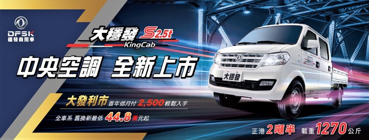 真2.5噸發財專家-DFSK大穩發追加中央空調,大發利市專案最優惠! CVNews 商業車誌: 盧佛青|05/25/2022 「國際合作、台灣製造」的穩發商用車,除了超前部署讓小發財升格為2.5噸發財專家,日前總代理合同興更宣布同級最出位的大好消息,同級唯一雙廂4人座的大穩發,為了讓運輸頭家跟夥伴一起享受最舒適的移動空間,宣布全新升級「雙廂大穩發S2.5t」中央空調全新上市,汰舊換新最低僅要價58.8萬起,本月底前購車更有大發利市優惠專案,購買中央空調大穩發,加碼贈送「盲點偵測器」及價值「10,000元」配件;另載重高達1342kg的「單廂金穩發S2.5t」汰舊換新最低44.8萬元起,同樣加碼送價值「15,000元」配件。 升級大穩發 讓全車同享最舒適的中央空調 DFSK賣最好的雙廂4門4座商用車,總代理合同興宣布新車全面標配超越同級貨車的後座中央空調系統,全新升級吸頂式獨立空調出風口,面對梅雨天氣不但可以保持舒適同乾燥,隔絕天雨黏膩不適、讓後座乘員也可以涼感大升級,不僅可提升工作效率,假日也可以輕鬆享受舒適旅程,無論是夥伴、家人、親友都可以爽爽坐、也爽爽賺。 比照休旅車設計的吸頂式中央空調,提供4具方向可獨立調整吹拂方向的超大容量出風口以外,還具備手動控制強弱二段功能,遇上濕黏黏的梅雨季節,乾燥舒適隨人需求可調可控,可以給隨車夥伴最貼心舒適的寬敞移動空間,接送家人通勤、假日出遊採買,後座椅下方還可以放東西、置裝備,不想放在外面任憑風吹日曬雨林的高價值裝備與行李等等,也都可以因為超舒適空調保持在乾燥妥善狀態,全台同級唯一雙廂4門4座發財專家大穩發,就是這麼貼心。 全新大穩發S2.5t搭載ABS防鎖死煞車系統及ESC車身動態穩定系統兩大安全配備,隨時守護行車安全,另外也具備同級唯一的後車門兒童安全門鎖,使得孩童共乘出遊更安心。雙前座椅還可進行多角度傾斜最大可達165度,及前後滑移共4向調整。頭枕也具備上下2向調整功能,握感扎實的方向盤搭配EPS電動輔助動力轉向,讓頭家朋友們開車奔馳舒適省力又愜意。 全新大穩發S2.5t採用同級唯一符合歐盟六期排放標準的1.5升DVVT環保引擎,具備VGIS可變進氣歧管技術,不僅排污相較同級車款更無味且更環保,同時最大馬力110ps/6000rpm,峰值扭力14.8kg-m/3600rpm,使載重爬坡更有力,更透過正時鏈條設計來使耐用度提高,讓頭家朋友享受更輕鬆無負擔的充沛駕馭性能。 為了回饋運輸頭家對大穩發的支持與愛顧,總代理合同興宣布全新進化雙廂大穩發S2.5上市售價新台幣63.8萬元,搭配舊換新補助最低僅需58.8萬起,再加碼贈送好禮「盲點偵測器」及價值「10,000元」配件。 金穩發 唯一正港二噸半載重快要一噸三 金穩發可以說是DFSK針對台灣發財頭家們需求打造的發財大王牌,除了提供達到1342kg的最大合法載重,完全屌打合法載重連一噸都不到的小小小發財,本月底前購車更有大發利市優惠專案,讓「單廂金穩發S2.5t」汰舊換新最低44.8萬元起,還加碼送價值「15000元」配件,讓建議售價50萬有找就可以直升二噸半、同樣預算就比小小小發財至少多載0.35-0.4噸,跑二趟就可抵小發財操三趟,既省油錢、工錢,賺錢效率提升還可降低不必要的風險。