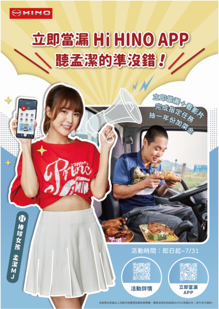 和泰商用車打造數位服務 推出Hi HINO全新APP CVNews 商業車誌: Davis Yang|06/28/2022 HINO商用車台灣總代理和泰汽車有鑑於行動生活普及化,於2022年6月28日獨家推出「Hi HINO」APP,供全台用戶免費下載。 「Hi HINO」能滿足大車司機的行車與生活需求,HINO車主經過資料驗證後,可享受獨家「愛車秘書」服務,隨時掌握愛車資訊,也有保養提醒、保修進度查詢,還可即時線上預約入廠,方便又快速。此外還有5大貼心功能提供車主與非車主使用,包含「大車友善地圖」-整理大車友善餐點店家資訊,漫漫長路上不怕你肚子餓;「和泰Points」-來保養送點數,可折抵部分保修費還可以上HOTAI購兌換好禮;「和泰Pay」-手機掃描結帳輕鬆又方便;「道路救援」-遇上突發狀況,處理步驟及救援拖吊電話都幫你準備好;「原廠據點」-幫你快速規畫路徑,愛車保養自在無阻。 「Hi HINO」為你加油!賀APP開台多重好禮獎不完* 第一重- 慶祝APP開台,HINO商用車請到棒球女孩孟潔化身Hi HINO小精靈,詳盡介紹APP功能的同時也為大家加油打氣。即日起至7/31止只要完成指定小任務,就有機會抽中1年份加菜金(和泰Points 10,000點),共計5名幸運兒。 任務一:下載Hi HINO APP 並註冊登入。 任務二:對FB本活動貼文按讚、tag一位好友+留言處分享「APP首頁截圖畫面」。 第二重- 即日起~12月31日止,每月在Facebook官方粉絲專頁都會釋出實用的大車好康主題,讓所有車主、司機增添生活的小確幸,每月關注粉絲專頁貼文並互動就可以月月再抽和泰Points 100點,每月抽出10名得獎者。 第三重- 常常覺得回廠保修等好久嗎? Hi HINO APP支援線上預約功能!本次優化預約的流程與介面,讓車主、司機可以輕鬆省力一指預約回廠。服務廠受理預約後可以預先安排、準備,縮短等候時間,即日起至12/31止用APP預約並回廠不限次數再加送和泰Points 20點。